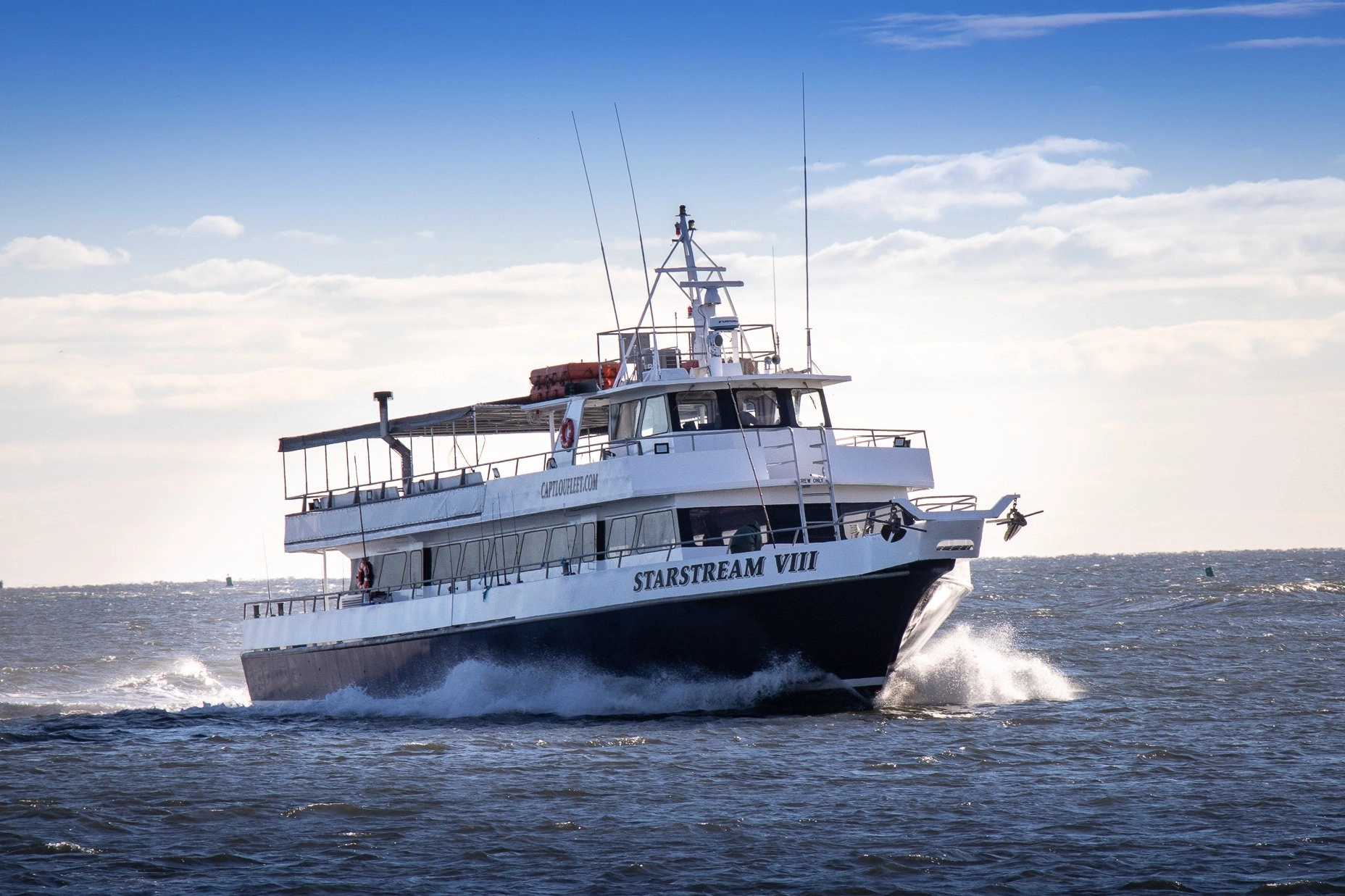 Captain Lou Fleet has been the top name in the fishing and the party charter boat business since 1956. We also have our private parties and fun cruises. We are conveniently located in Central Nassau County and are just a half-hour or less from New York City and eastern Long Island on the famous Nautical Mile. We specialize in half-day fluke fishing trips in the Summer, Private Fishing Charters. Capt Lou’s Party Boats specializes in all Occasion Parties and Party Boat Rentals not limited to; Birthdays, Fundraisers, Churches, Sweet Sixteens, and more! Capt Lou’s Party Boat has many public cruises as well! We also have the Sapphire Princess Yacht, which is part of our fleet specializing in Dinner Cruise and Private Parties, and Weddings.